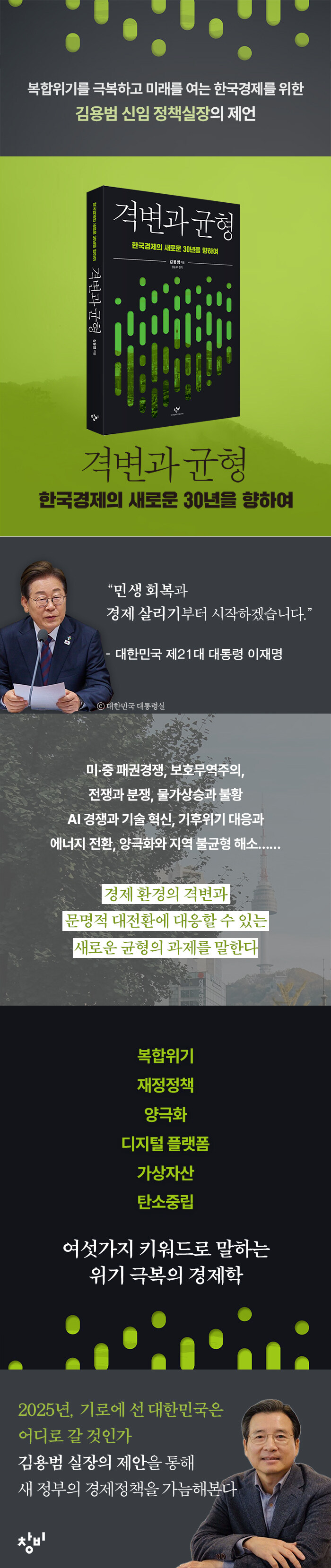 지난 34년간 한국경제의 최전선을 지켜온 김용범 전 기획재정부 차관의 신간 『격변과 균형: 한국경제의 새로운 30년을 향하여』(권순우 정리)는 이 위기의 순간에서 출발한다. 현장에서 위기를 직접 목격하고 관리한 김 전 차관은 당시의 생생한 상황을 전하며 독자의 눈길을 이끈다. 저자는 팬데믹 이후 우리가 겪고 있는 이 위기가 단순히 감염병 방역에서 파생된 일시적 혼란이 아니라 오늘날 세계경제와 한국경제가 맞닥뜨린 경제·금융의 위기와 보건위기가 결합된 ‘복합위기’라고 진단한다.